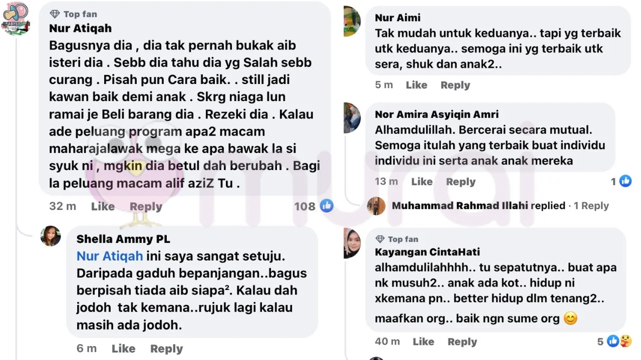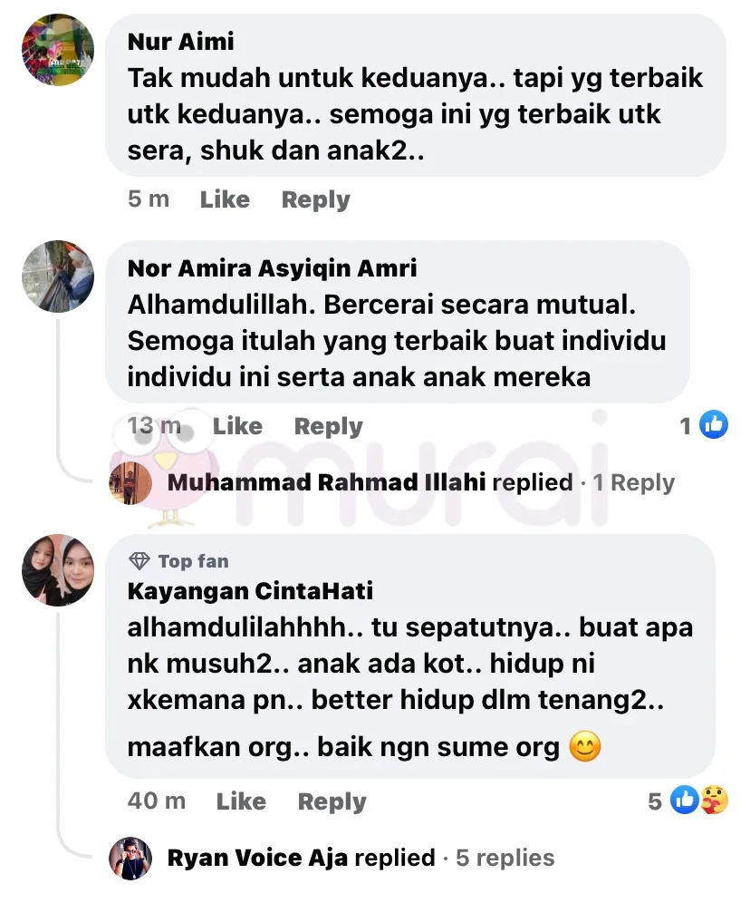 “Ini saya sangat setuju, daripada gaduh berpanjangan, bagus berpisah tiada aib siapa2, kalau dah jodoh tak kemana. rujuk kalau masih ada jodoh.”-ujar mereka