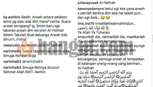 Semalam, industri hiburan dikejutkan dengan perginya seorang lagi bintang apabila pelakon, Nurin Misha dilaporkan telah kembali ke rahmatullah pada pagi Ahad.