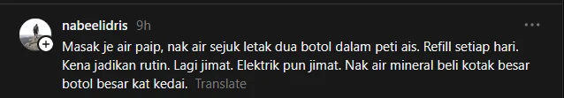 Namun dalam masa sama, ada juga yang tampil memberikan pandangan lebih praktikal. Antaranya mencadangkan kaedah alternatif seperti memasak air paip dan menyimpannya dalam peti sejuk sebagai langkah lebih selamat dan menjimatkan.