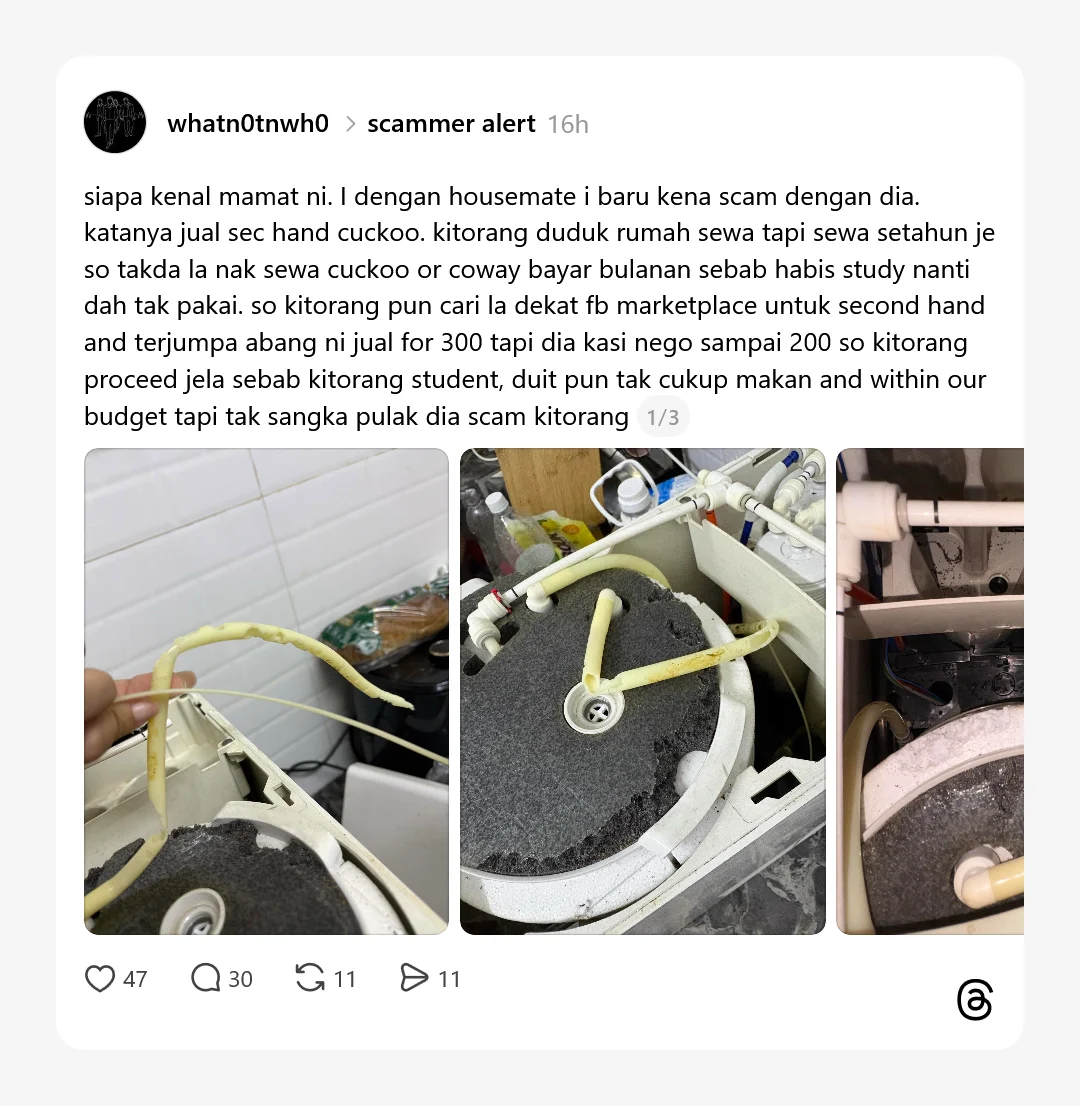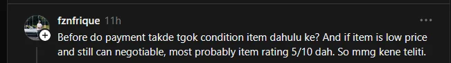 Selain itu, segelintir netizen turut menekankan kepentingan untuk memeriksa keadaan barangan secara fizikal sebelum membuat pembayaran, terutama jika harga yang ditawarkan terlalu rendah berbanding pasaran.