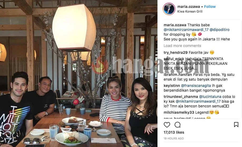 Dalam post terbarunya, terlihat Nikita Mirzani bersama kekasihnya Dipo Latief makan tengahari bersama Maria Ozawa dan juga pasangannya.