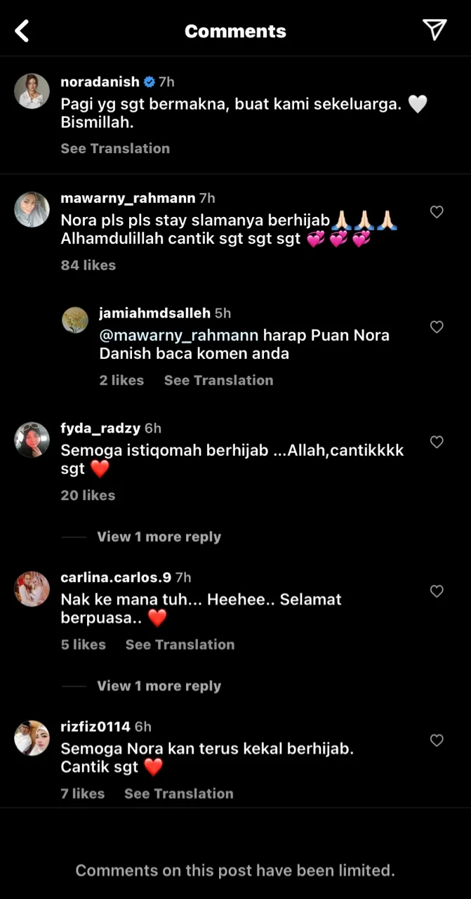 “Nora please please stay selamanya berhijab, Alhamdulillah cantik sangat sangat sangat.”-kata mereka