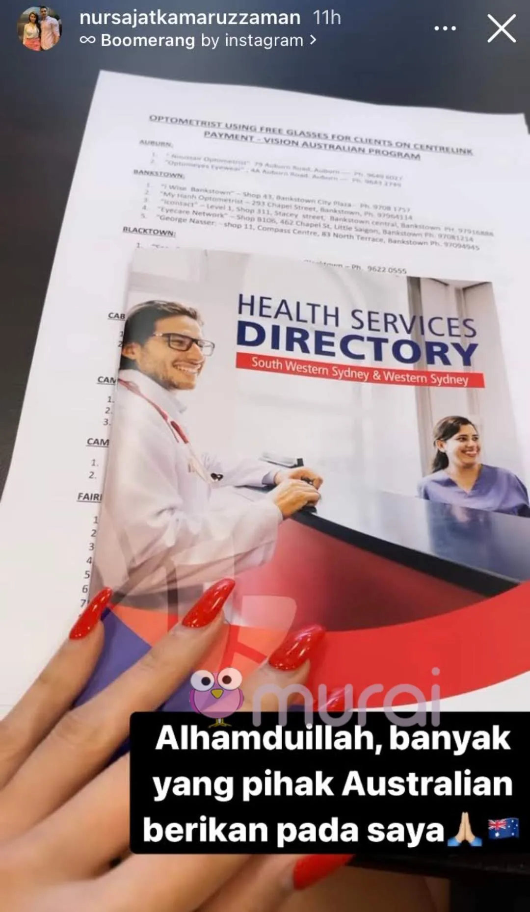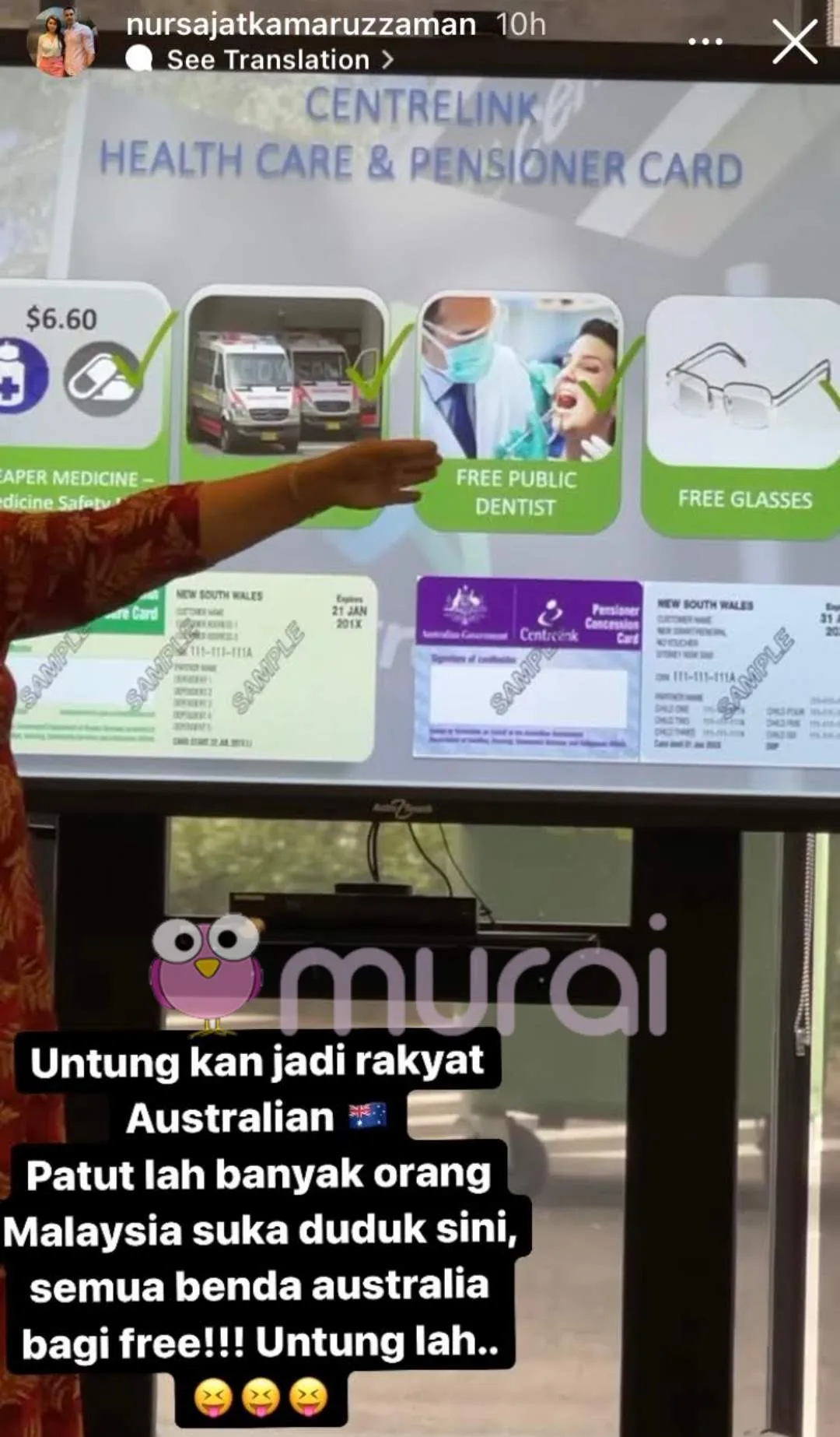 Menerusi Insta Stories, Sajat berkata dia aku beruntung menjadi rakyat Australia disebabkan keistimewaan yang disediakan oleh pihak Australia seperti rawatan gigi (public dentist) secara percuma.