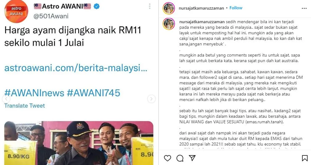 Perkara itu dikongsi menerusi entri di akaun Instagram miliknya beserta beberapa potongan artikel berkaitan dua isu terbabit.