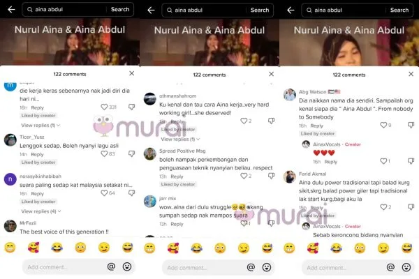 Rakaman video yang memaparkan nyanyian Aina pada dua tahun yang berbeza iaitu pada 2009 dan 2022 itu, menjadi fokus warganet terutama dikalangan peminat penyanyi berbakat besar ini.