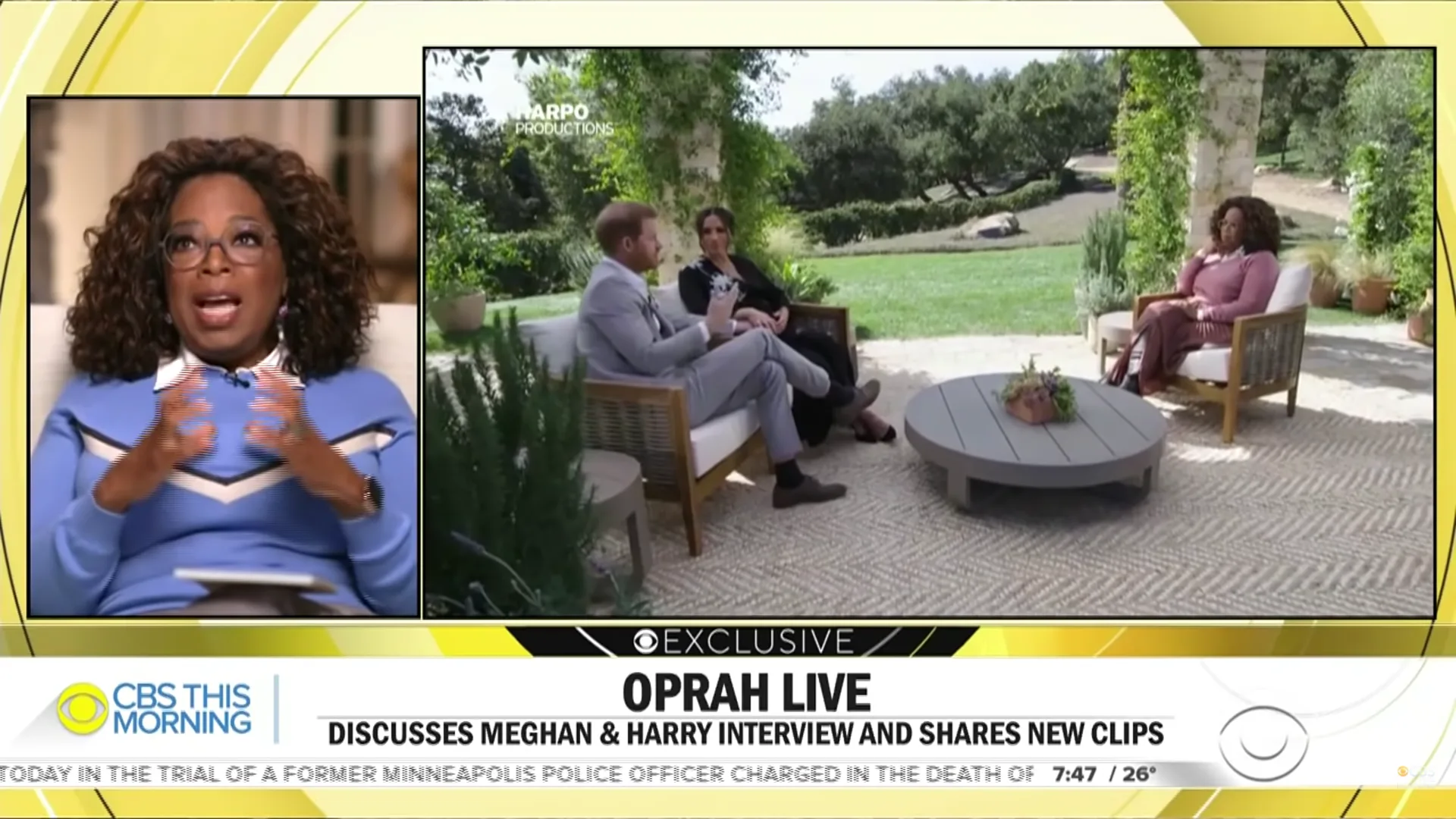 Menurut sebuah video yang dimuatnaik di Youtube CBS This Morning, Winfrey setelah akui terkejut dengan beberapa pendedahan yang dibuat oleh Putera Harry dan Meghan Markle. Salah satunya mengenai warna kulit Archie.