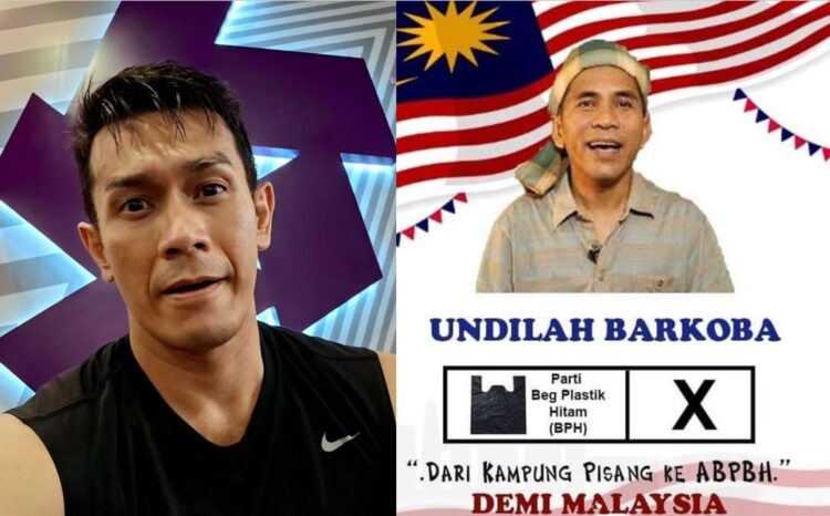 Menariknya poster tersebut, dapat dilihat nama parti yang diletakkannya adalah Parti Beg Plastik Hitam (BPH) dimana sangat sinonim dengan wataknya Barkoba yang ponteng puasa ketika Ramadan.
