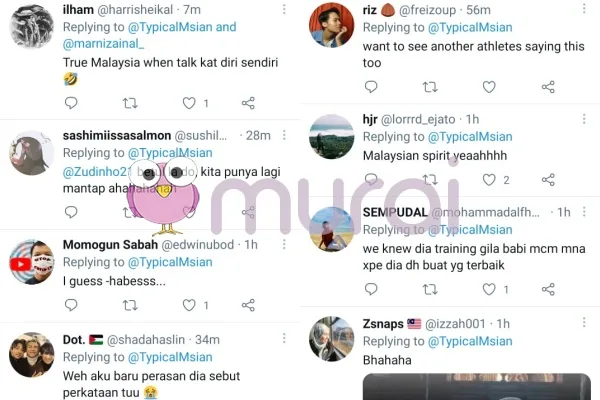 “Kami tahu dia berlatih gila babi macam mana, tak apa dia dah buat yang terbaik” ciap pengguna Twitter pertama