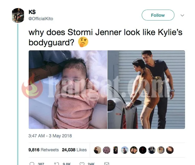 Dalam perkembangan lain, peminat di media sosial mula mempertikaikan sesuatu mengenai Stormi kerana wajahnya mempunyai iras pegawai peribadi Kylie, Tim Chung.