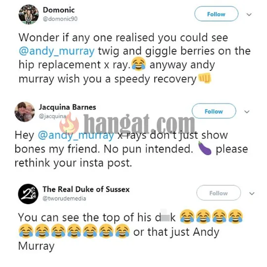 Seperti yang dilaporkan oleh Sportbible, Murray berkongsi gambar X-Ray yang di ambil di kawasan pinggulnya. Namun apa yang menjadi perhatian netizen, mereka telah melihat dengan cepat bahawa bayangan pada X-Ray menunjukkan bentuk alat kelaminnya.