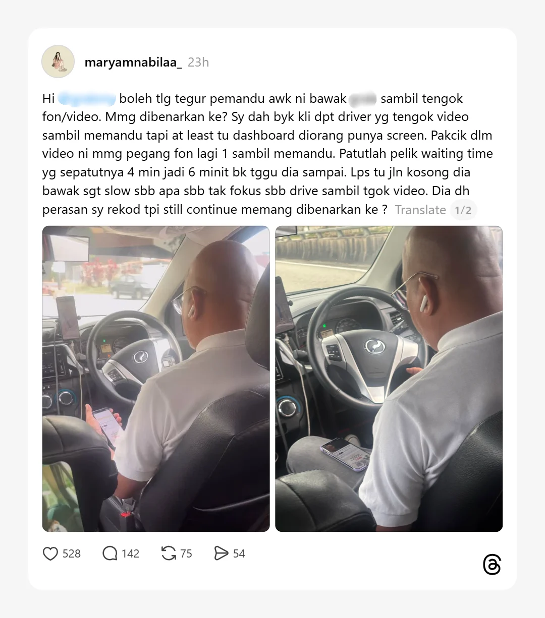 Beberapa pengguna turut berkongsi pengalaman masing-masing, termasuk pemanduan berbahaya seperti kerap “cilok” kenderaan lain, hampir terlibat dalam kemalangan, kerap terkeluar lorong serta memandu dalam keadaan mengantuk.