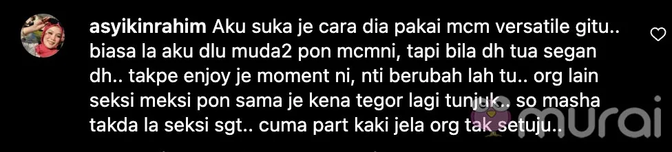 Walaubagaimanapun, sehingga artikel ini ditulis, Masya tidak kelihatan membalas komen berbentuk teguran dari peminatnya. Dia terus dengan cara pemakaiannya dengan fesyen yang unik. Apa komen anda?