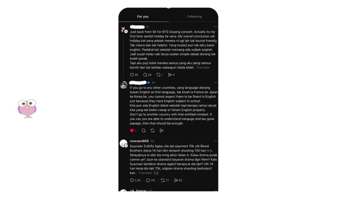 Ada yang turut menyentuh isu stereotaip bahawa semua rakyat Korea wajib fasih berbahasa Inggeris hanya kerana mempelajarinya di sekolah. Pada pandangan MURAI, isu ini sebenarnya lebih kepada pertembungan expectation vs realiti ketika melancong. Tidak semua negara menggunakan bahasa Inggeris sebagai bahasa utama, termasuk Korea Selatan. Jadi, adalah tidak adil untuk mengharapkan semua penduduk tempatan boleh berkomunikasi dengan lancar dalam bahasa tersebut.