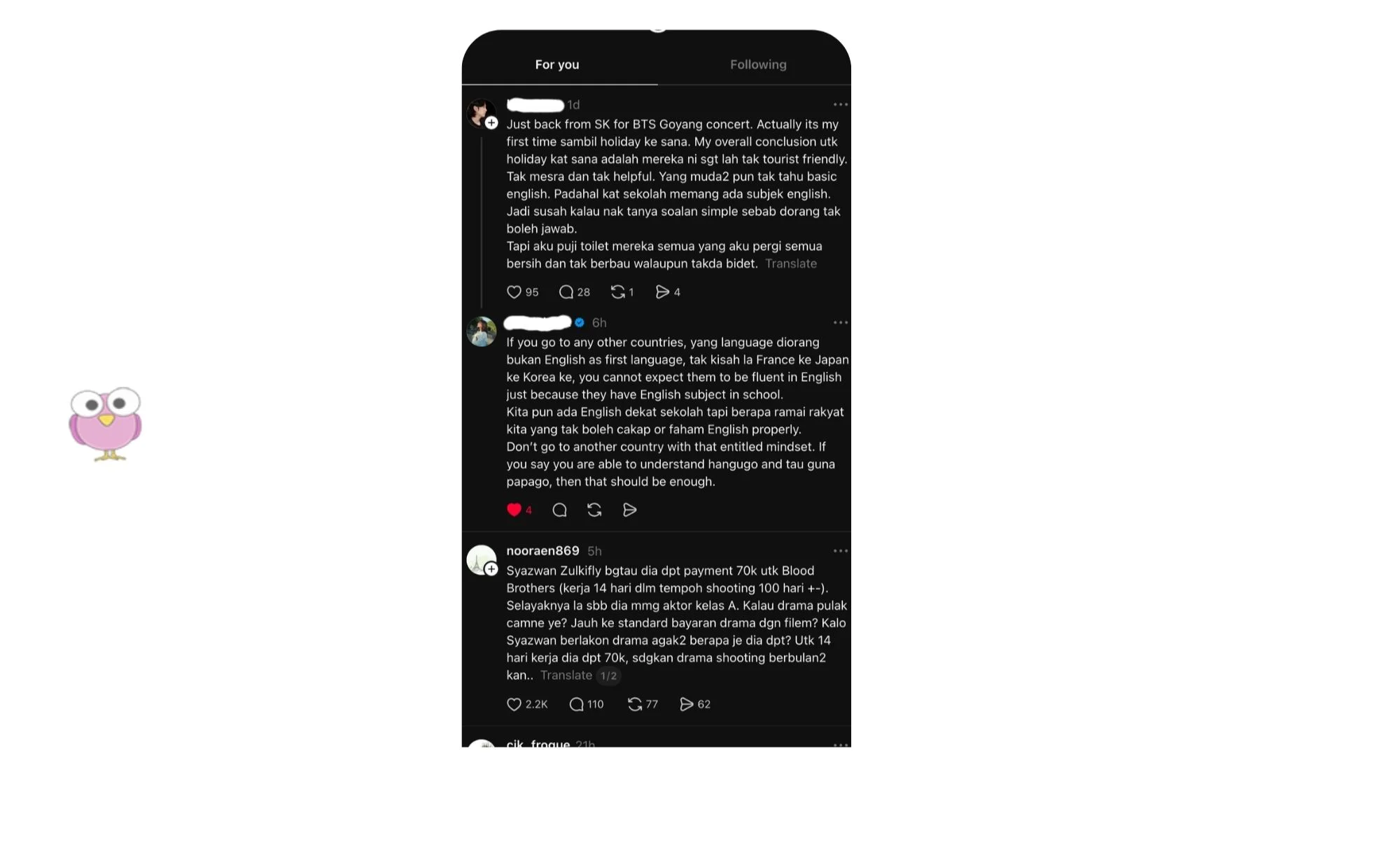 “Just back from SK for BTS Goyang concert. Actually it’s my first time sambil holiday ke sana. My overall conclusion utk holiday kat sana adalah mereka ni sgt lah tak tourist friendly. Tak mesra dan tak helpful. Yang muda2 pun tak tahu basic English…”