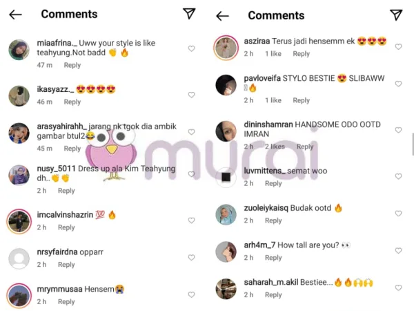 Melihat penampilan Imran yang ringkas dan bersahaja itu mendapat perhatian orang ramai di media sosial, rata-rata ramai yang memberi komen tentang penampilan Imran dan ada juga yang mengatakan gaya Imran seperti Taehyung dari BTS.