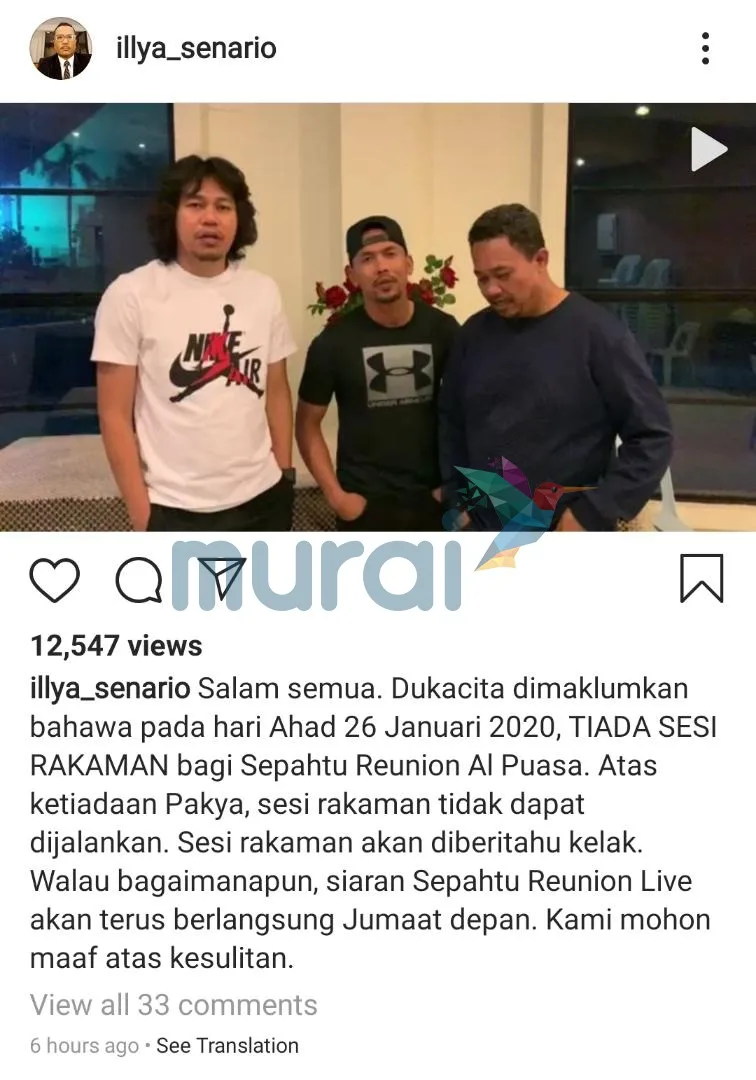 Baru-baru ini di media sosial tular mengenai dakwaan pelawak Ilya Buang atau lebih dikenali sebagai Pak Ya yang dikatakan telah dihalang daripada terbabit dalam rakaman program Sepahtu Reunion Al Puasa yang sepatutnya berlangsung di Royal Teater, Shah Alam pada Ahad lalu.