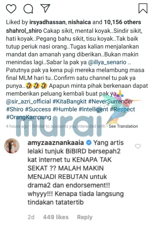 Murai MY adalah portal berita yang menyajikan informasi hiburan dan dilengkapi dengan gambar eksklusif serta video terkini. Mulai dari gosip selebriti Malaysia, Indonesia dan seluruh negara, filem-filem Hollywood, muzik generasi sehinggalah Hotlist selebriti popular.