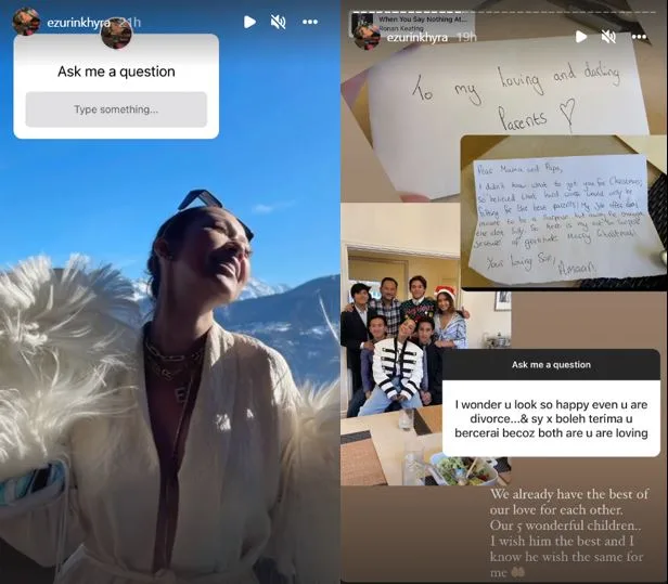 Ezurin telah mengambil soalan yang diajukan oleh netizen dan menjawabnya bahawa dia bersyukur kerana dia dan suami telah mempunyai cinta yang terbaik untuk satu sama lain iaitu lima orang anaknya.