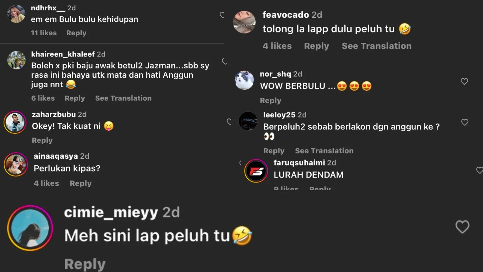 “Boleh tak pakai baju awak betul2 jazman, sebab saya rasa ini bahaya untuk mata dan hati anggun nantiu”