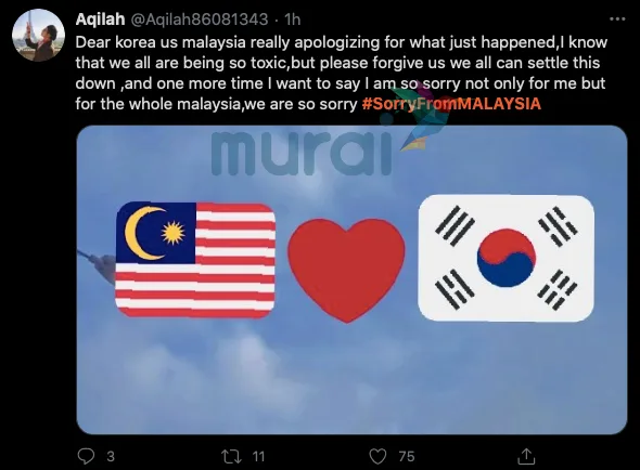 Tambahan lagi, mereka turut mewujudkan tanda pagar #SorryFromMALAYSIA yang ingin mewakili Janna dan Malaysia memohon maaf kepada kumpulan BLACKPINK dan beberapa pihak lain atas insiden yang terjadi sebelum ini.