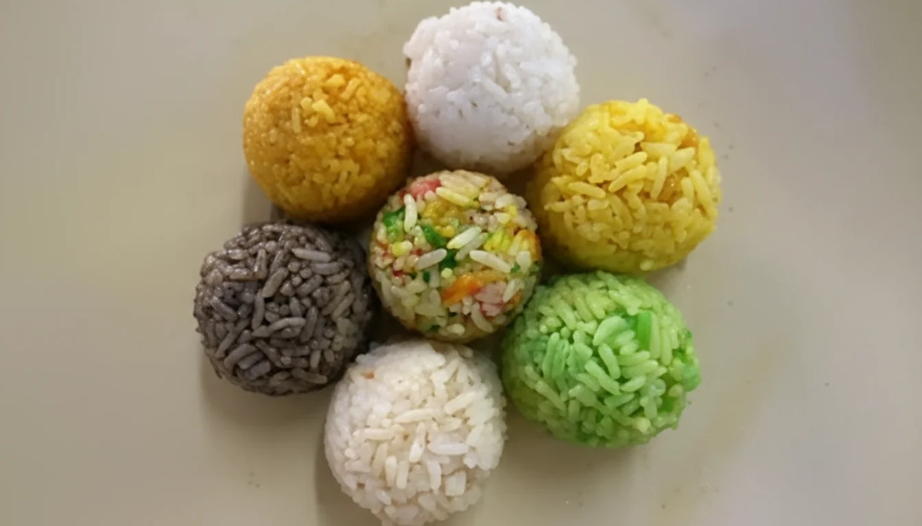 Susunan nasi dalam pinggan sangat cantik, dengan warna yang menarik perhatian. Dari jauh pun dah buat kalian lapar. Sesetengah nasi mungkin kalian tak pernah dengar atau rasa, jadi inilah peluang terbaik untuk mencuba.