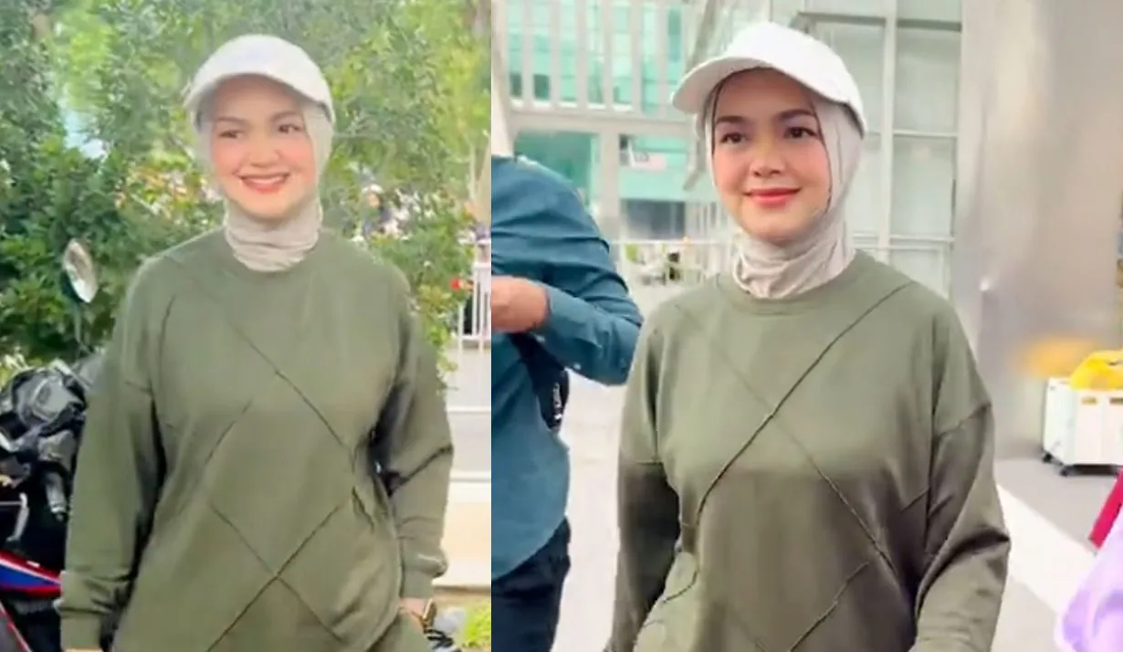 Meskipun hanya mengenakan pakaian set ringkas berwarna hijau, penampilan Siti tetap mencuri tumpuan.