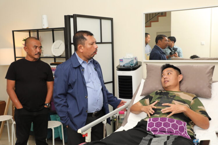 Wan Saiful, yang dilindungi oleh Skim Keselamatan Sosial Pekerjaan Sendiri (SKSPS) PERKESO, layak menerima Faedah Hilang Upaya Sementara (FHUS) berserta peralatan sokongan pemulihan. Ketua Pegawai Eksekutif Kumpulan PERKESO, Dato’ Sri Dr. Mohammed Azman Aziz Mohammed hari ini menziarahi Wan Saiful, 40, di kediaman beliau di Rawang sambil menyerahkan faedah PERKESO.