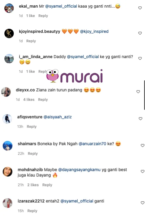 Di ruangan komen, peminat membanjirinya dengan pelbagai spekulasi mengenai penyanyi yang akan menggantikan Ernie kelak. Antara nama yang disebut-sebut Dayang Nurfaizah, Aishah Aziz, dan ibu serta bapa saudaranya, Ziana Zain dan Anuar Zain.Tidak terkecuali, suami Ernie yang juga penyanyi popular, Syamel juga antara figura dikatakan berpotensi untuk menggantikannya.