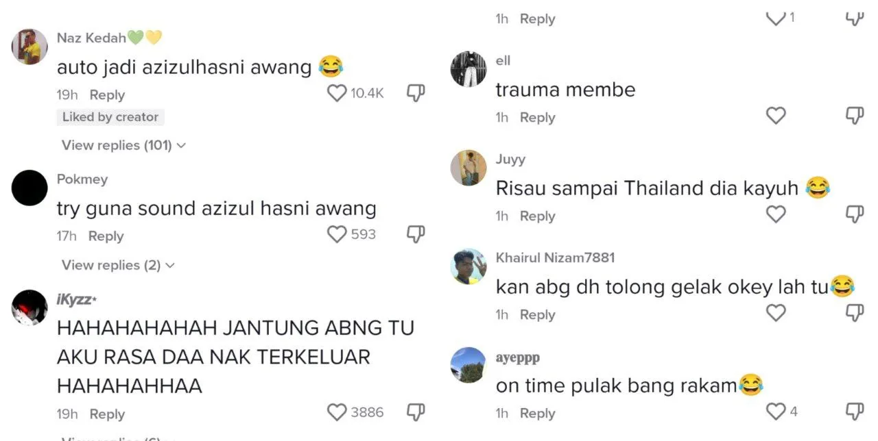 Menjengah keruangan komen, rata-rata netizen terhibur dengan gelagat lelaki tersebut sehinggakan ada yang menggelarnya sebagai penunggang basikal Negara, Azizulhasni Awang. Ada juga mengatakan penunggang basikal tersebut akan trauma setelah apa yang telah terjadi padanya.