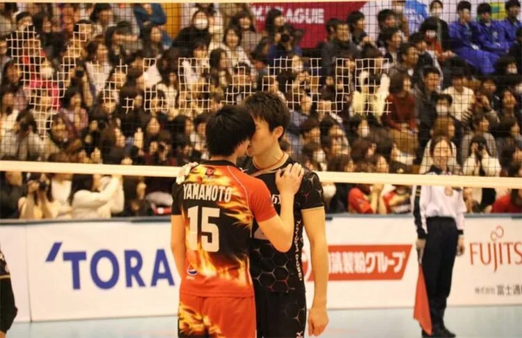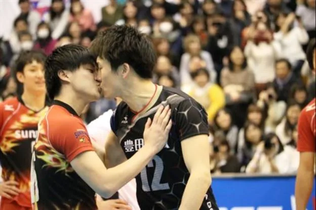 Aksi mengejutkan dua atlit tampan dari pasukan Jepun ini bercium mulut sewaktu di tengah gelanggang telah mendapat perhatian ramai. Adakah dengan cara sebegini yang lebih ‘romantik’ boleh menamatkan perbalahan?