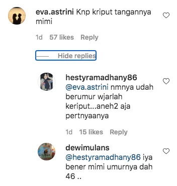 Netizen kemudian sibuk berbalah tentang keadaan tangan Krisdayanti yang berkedut. Ada yang mengatakan bahawa ini wajar kerana meningkatnya usia. Ada juga netizen yang tertanya-tanya bagaimana Krisdayanti boleh mengekalkan wajah nampak muda, namun usianya di tutup tatkala melihat tanggannya.