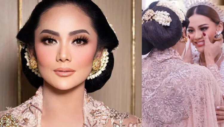Krisdayanti nampaknya begitu teruja mengambil gambar dengan tetamu undangan yang menghadiri majlis perkahwinan anak perempuannya, Aurel Hermansyah, dan Atta Halilintar. Salah seorang tetamu adalah hos TV Ayu Dewi.