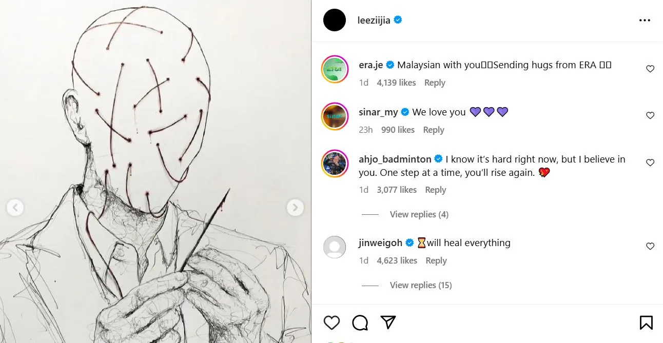 Lebih membimbangkan, Zii Jia juga menukar gambar profil Instagramnya kepada warna hitam sepenuhnya.