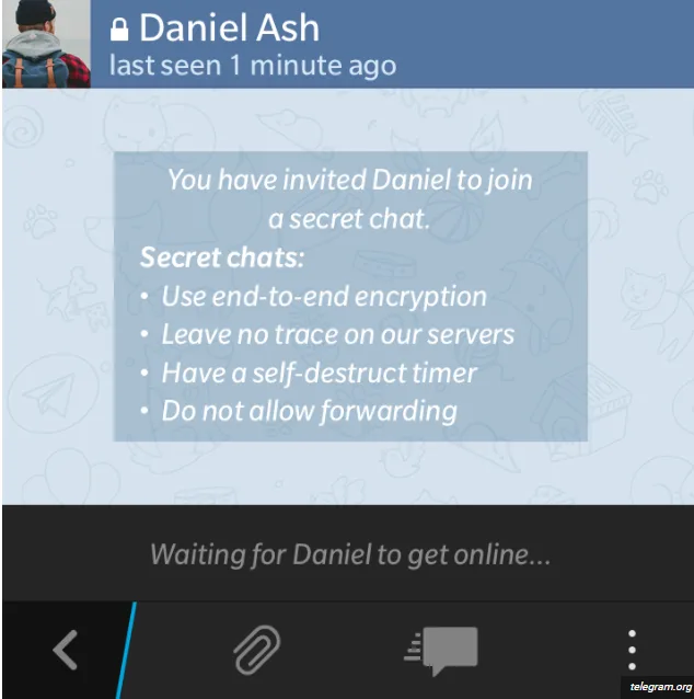Mesej dalam Secret Chat tidak dapat diakses oleh sesiapa kecuali orang yang terlibat dalam perbualan. Telegram juga tidak mempunyai akses untuk membuka Secret Chat anda.