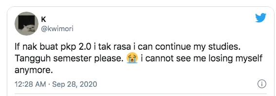 Selain orang ramai yang sedang bekerja, pelajar juga merasakan tekanan, kerana PKP 2.0 memungkinkan mereka harus kembali ke pembelajaran dalam talian. Bukan hanya itu, pengambilan pelajar baru di universiti mungkin juga akan dihentikan.