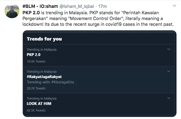 Rakyat Malaysia merasa panik dan takut akan perkara ini dan telah berkongsi pendapat mereka di Twitter. Sehingga artikel ini ditulis, PKP 2.0 dan MCO 2.0 menjadi trending Nombor 1 di Twitter.