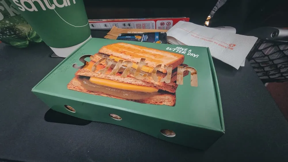 Mula-mula memang rasa risau. Sebab ini bukan full service flight, makanan tak termasuk. Terus lah risau, “Habis aku kelaparan 11 jam ni… confirm harga makanan cekik darah.”