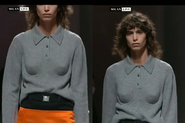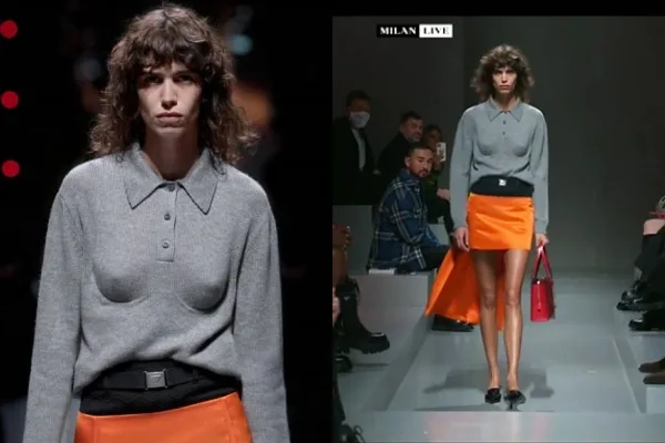Perincian cawan bra di dada pakaian tersebut yang menampilkan bentuk payudara model, dan hasil rekaan Miuccia bersama Raf Simons ini mendapat kritikan orang ramai.