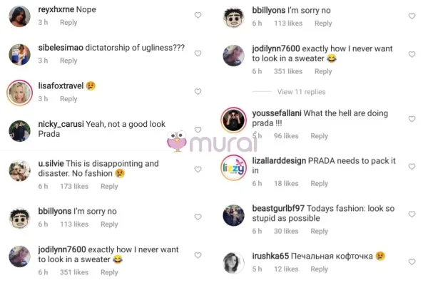 Ada juga warganet yang terlalu marah dengan pereka Prada, dengan mengatakan mereka sangat kecewa melihat koleksi yang dikeluarkan.