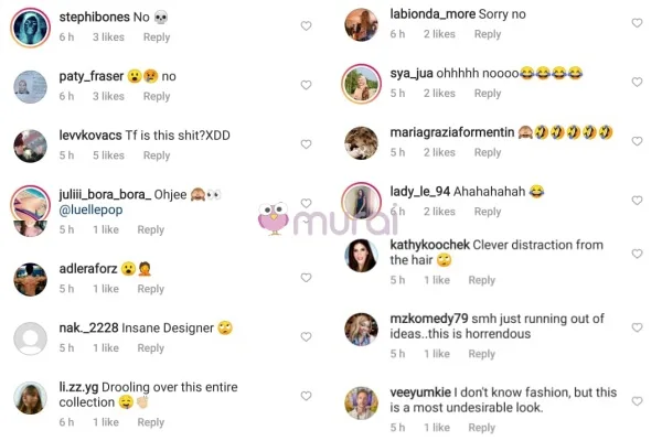 Ramai wanita meluahkan rasa tidak puas hati mereka mengenai rekaan fesyen yang diperagakan oleh model tersebut. Warganet menganggap ianya rekaan yang sangat teruk, dan sampah berbanding rekaan koleksi busana yang lain.