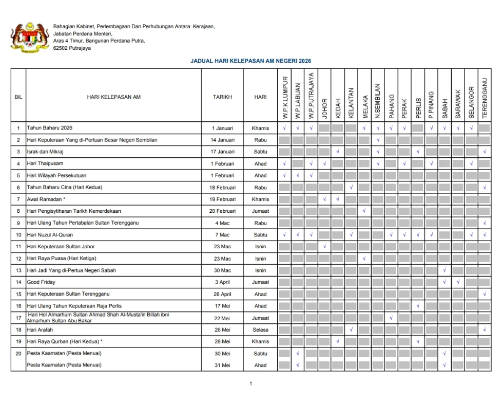 Rasanya anda boleh merancang cuti panjang bermula esok, Hari Krismas sehingga ke Tahun Baru 2026. Tapi tunggu dulu kerana tak semua negeri di Malaysia mengambil cuti Tahun Baru tau!