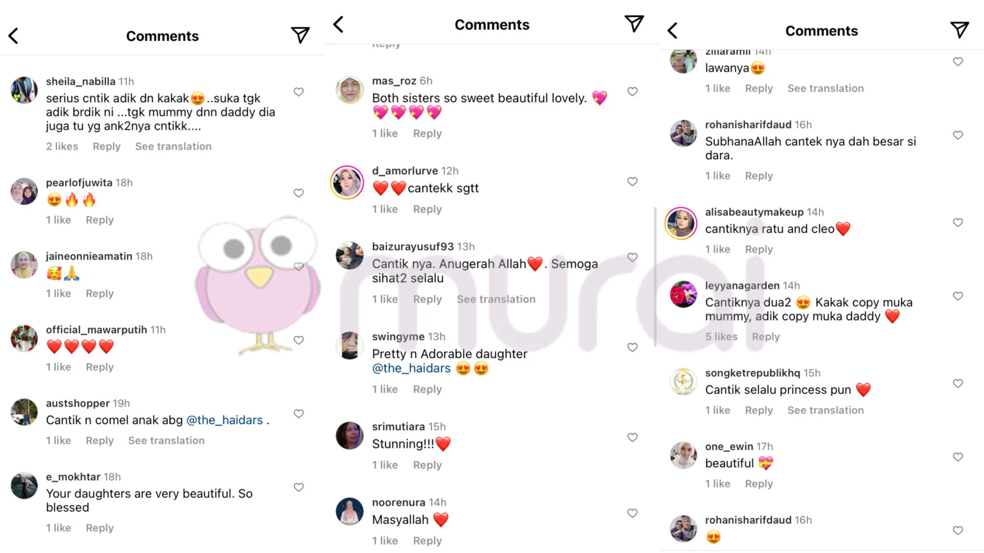 “Serius cantik adik dan kakak ?. Suka tengok adik beradik ni. Tengok mummy dan daddy dia juga tu yang anak-anaknya cantik.”