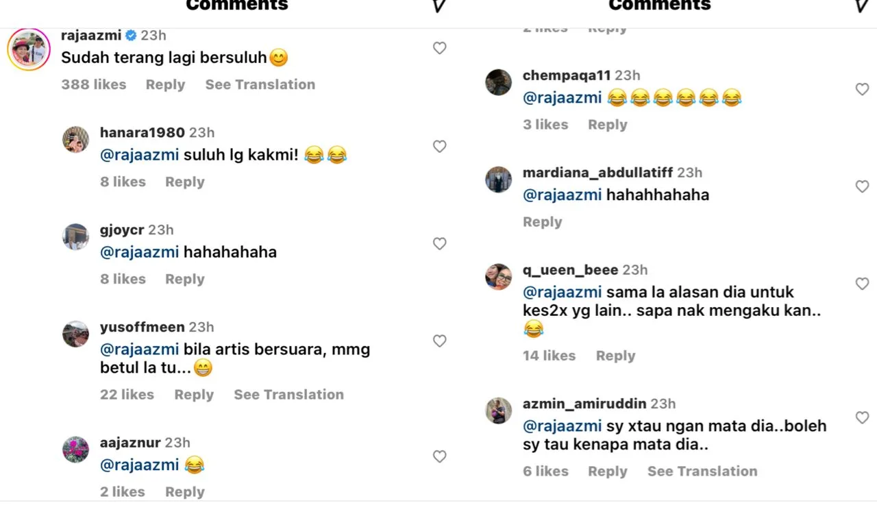 pengarah dan penerbit, Raja Azmi kelihatan meninggalkan komen pada gambar Zahid Hamidi yang tersebar luas itu.