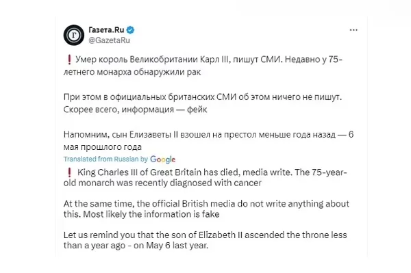 Walau bagaimanapun, berita mengenai kematian Raja Charles III ini telah menyebabkan kekeliruan dan akhirnya kedutaan British di Moscow mula campur tangan.