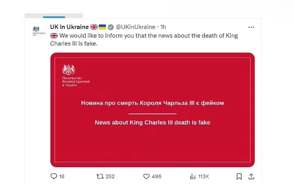 “Kami ingin memaklumkan kepada anda berita mengenai kematian Raja Charles III adalah palsu.”