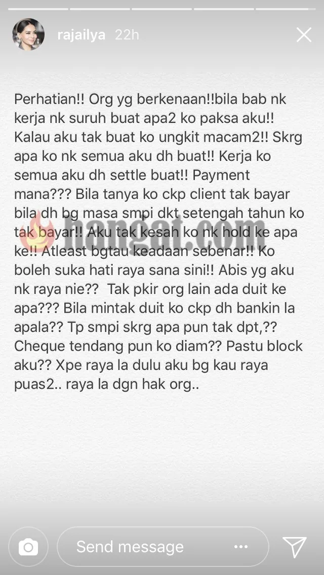 Namun begitu, terbaru Ilya dilihat telah memuat naik satu kenyataan di Insta-story nya yang dilihat seperti kecewa dan tidak berpuas hati angkara seseorang.