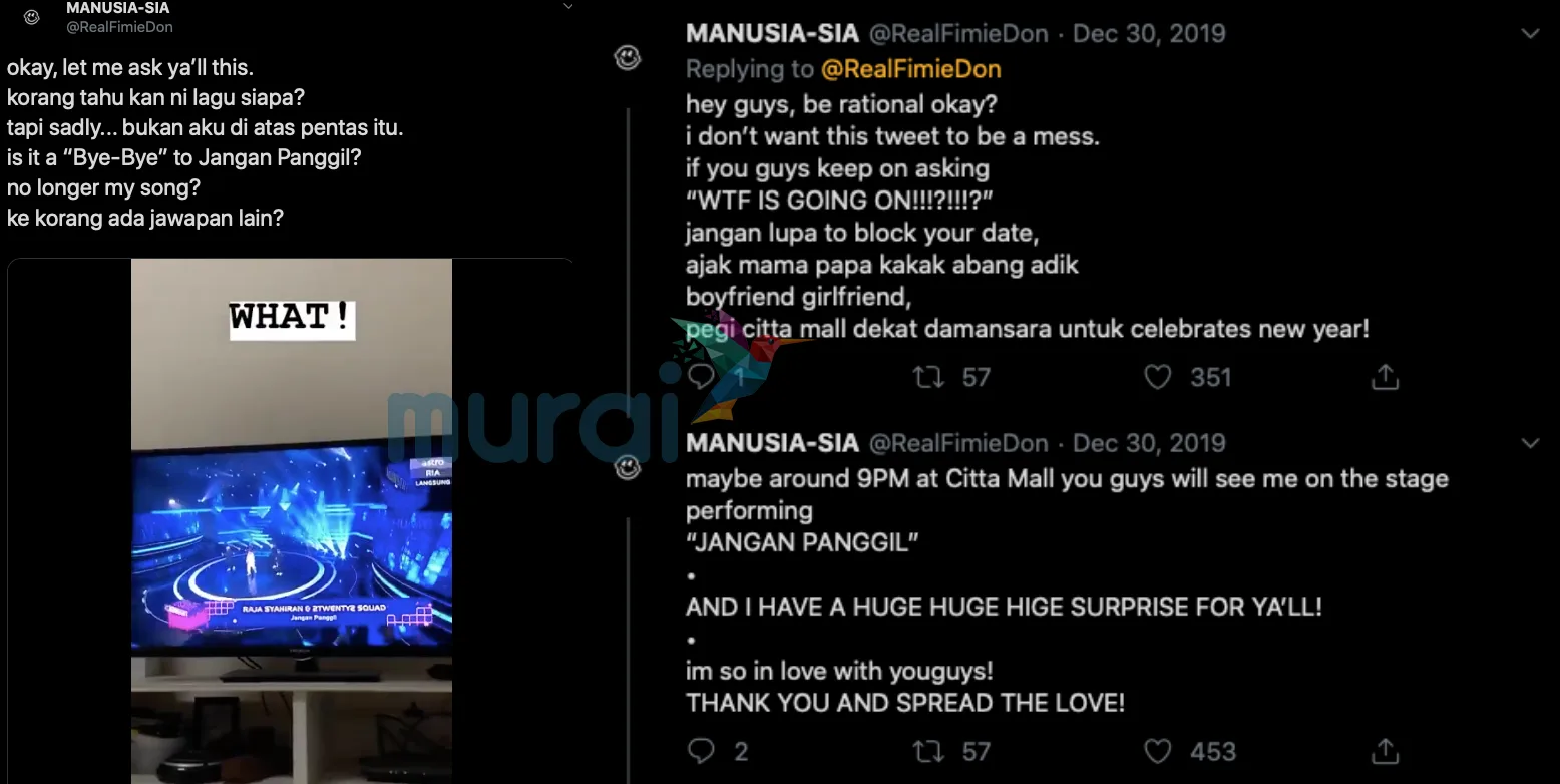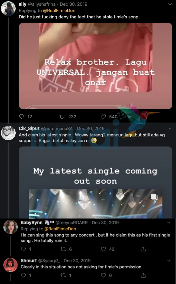 “Sebenarnya kenyataan dari Fimie agak neutral tetapi saya tidak faham kenapa masyarakat kita selalu ambil perkara negatif. Padahal kita dah bagi ‘hint’ dari awal November lagi mengenai kolaborasi ini tetapi orang tak nak fahamkan dan terus membuat tanggapan masing-masing. Tau-tau je tuduh curi lagu padahal saya dah bagitau sebelum ini”