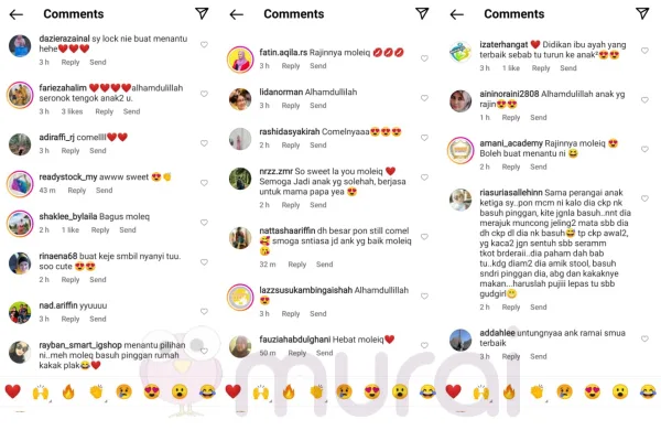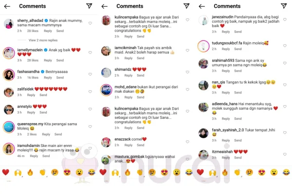 Rata-rata ramai yang memuji Moleiq seorang anak yang rajin dan tidak kekok membuat kerja rumah, ada juga yang memberi komen mengatakan anak perempuan Ozlynn dan Johan ini sesuai dijadikan sebagai menantu pilihan hati.