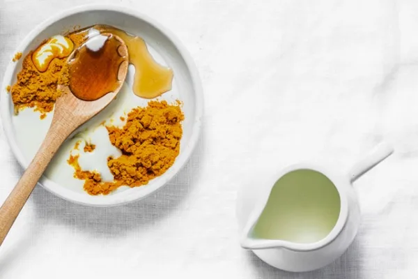 - Campurkan kunyit dan minyak kelapa dalam satu bekas.