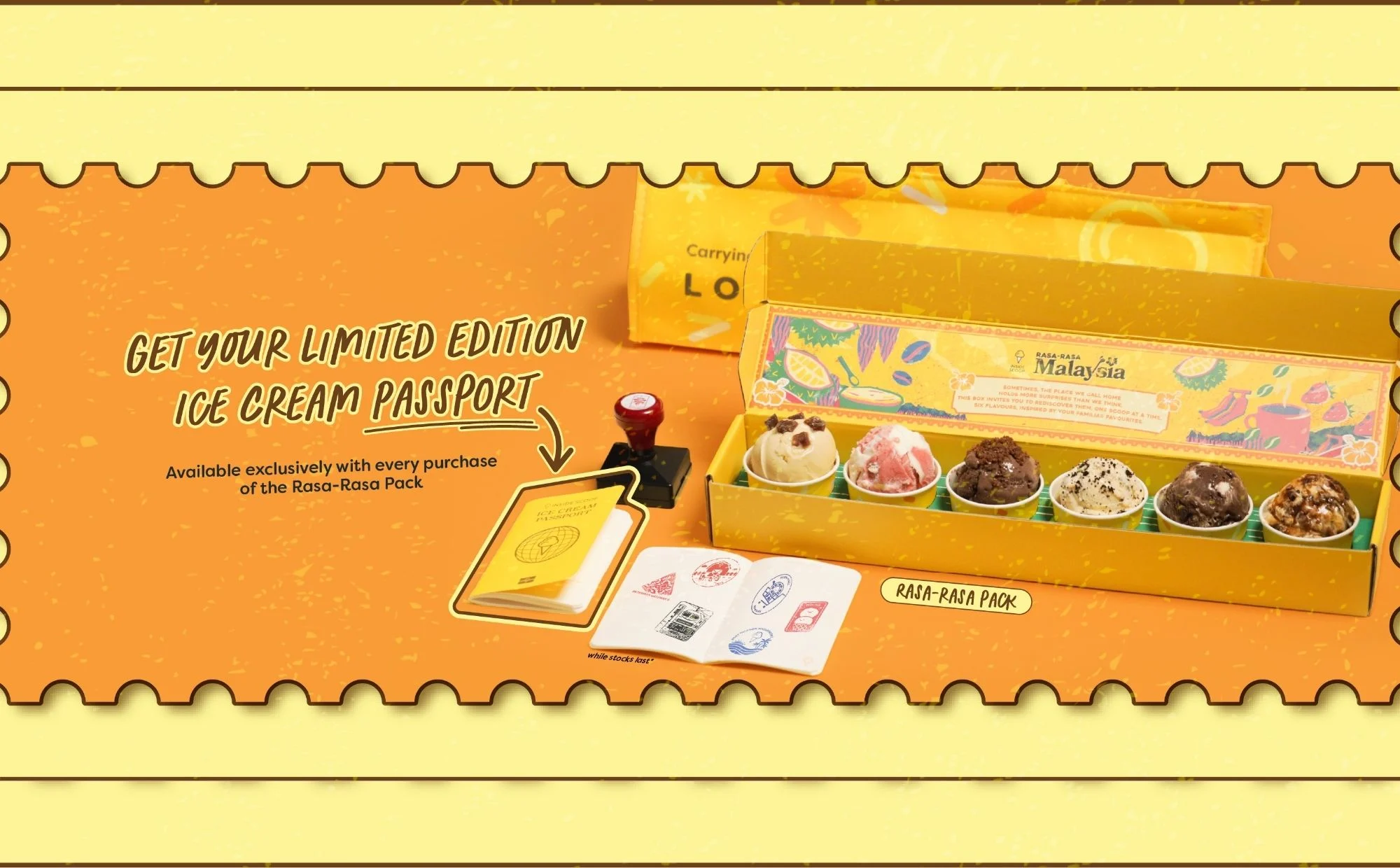 Inside Scoop turut membangkitkan keterujaan pengembaraan citarasa ini melalui aktiviti jejak cop (stamp rally). Bagi setiap pembelian Pek Rasa-Rasa (RM70) edisi terhad, pelanggan akan menerima sebuah Pasport Aiskrim.